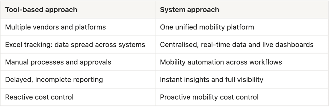 Transitioning from tools to a system reduces complexity, but it also changes what organisations can do with mobility.